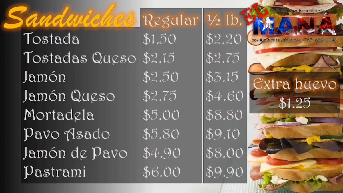 Panadería y Repostería El Maná Menu